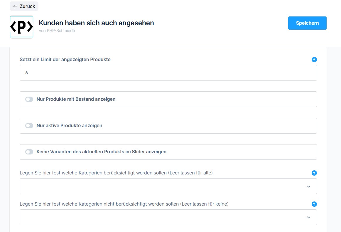 Sobald das Plugin aktiviert ist, werden die Produkte angezeigt. In den Einstellungen des Plugins kann das Limit der angezeigten Produkte bestimmt werden. Zusätzlich kann entschieden werden, ob nur Produkte mit Bestand, aktive Produkte oder Varianten angezeigt werden sollen.